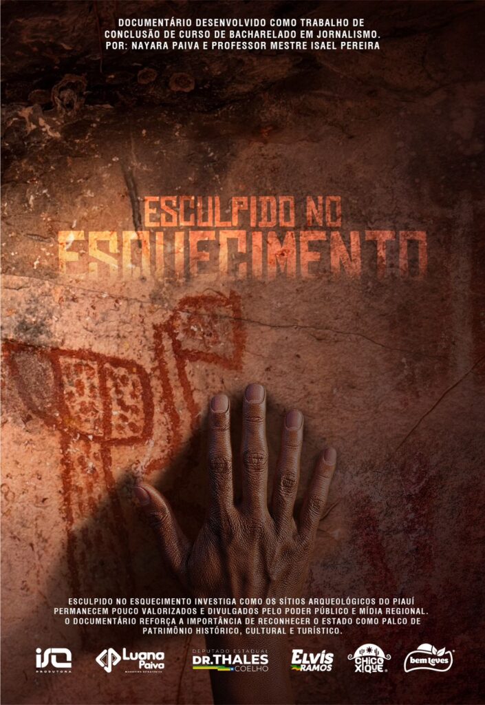 A jornalista Nayara Paiva apresenta ao público o documentário Esculpido no Esquecimento, desenvolvido como Trabalho de Conclusão de Curso (TCC) do Bacharelado em Jornalismo, sob orientação do professor mestre Isael Pereira. A produção investiga a forma como os sítios arqueológicos do Piauí seguem pouco valorizados e divulgados, tanto pelo poder público quanto pela mídia regional.