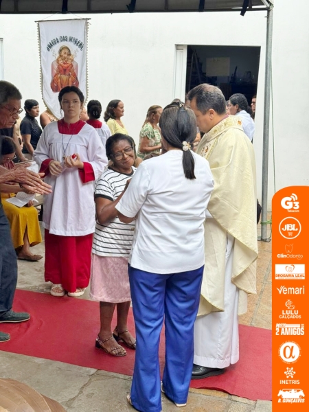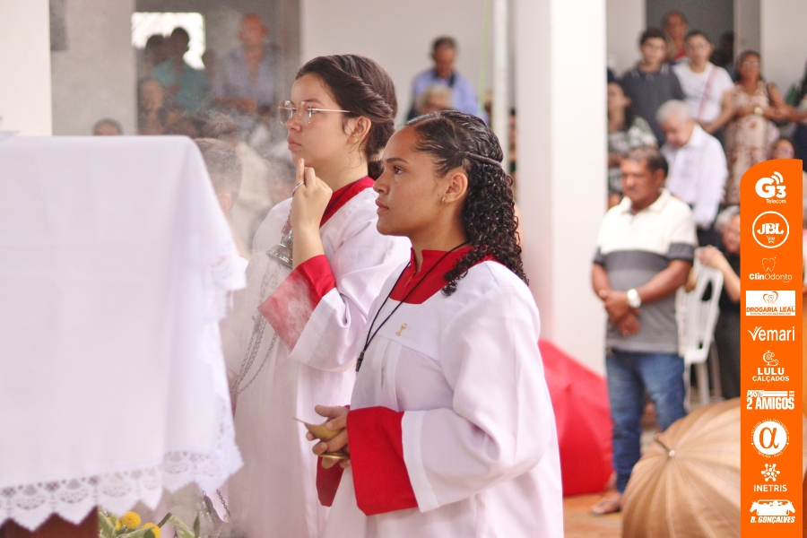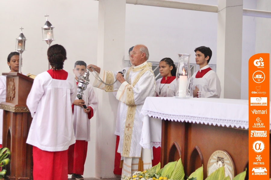 A celebração foi presidida pelo padre Ranieri, reitor do Santuário de Santa Cruz dos Milagres, e contou com a presença dos padres locais, entre eles os padres Daniel Rodrigues e Diego Santos (que se despede da comunidade), além dos diáconos e de todo o povo de Deus presente.